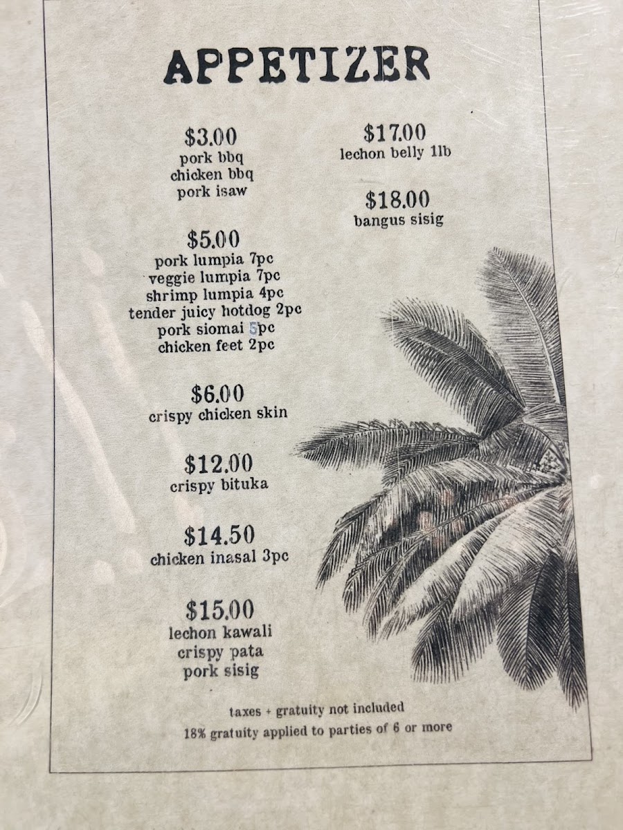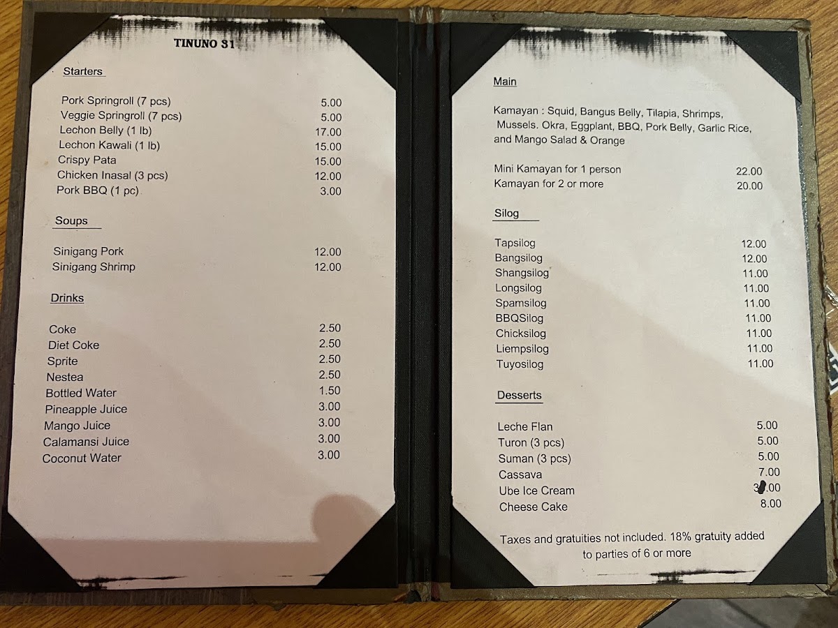 Customer reviews reflect a genuine appreciation for the dining experience at Tinuno. Many highlight the deliciousness of the meals, particularly the grilled squid and the Kamayan platter, which are full of bold flavors. The friendly service adds to the experience, with guests noting how staff members make them feel welcomed and valued. One customer raved, "Absolutely delicious from start to finish!" while another praised the attentive service provided by the knowledgeable staff.