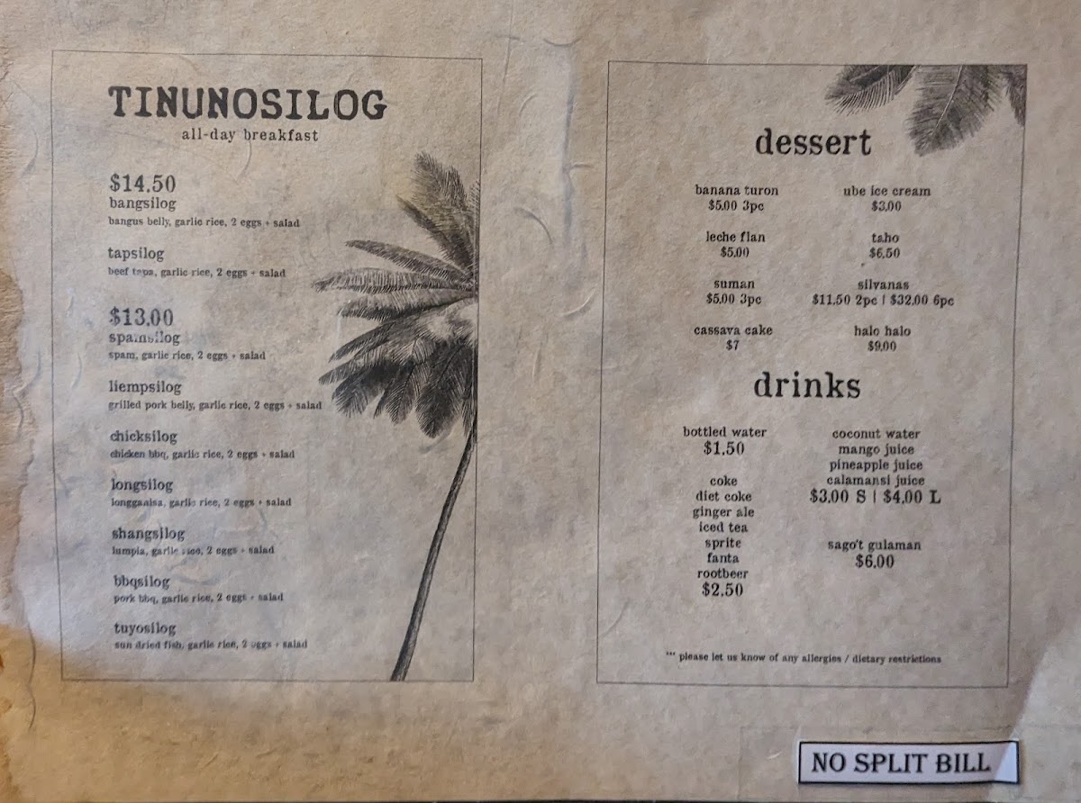 For those with a sweet tooth, Tinuno serves up irresistible desserts like the Halo Halo (CA$12.50), a delightful dessert brimming with colorful ingredients and textures that will make your taste buds dance with joy. Reviews speak of the Leche Flan (CA$6.25) as a creamy, caramel success that should not be missed, alongside the rich Silvanas, either in a 2-piece set for CA$14.50 or a 6-pack for CA$40.00, guaranteed to satisfy any craving for something sweet.